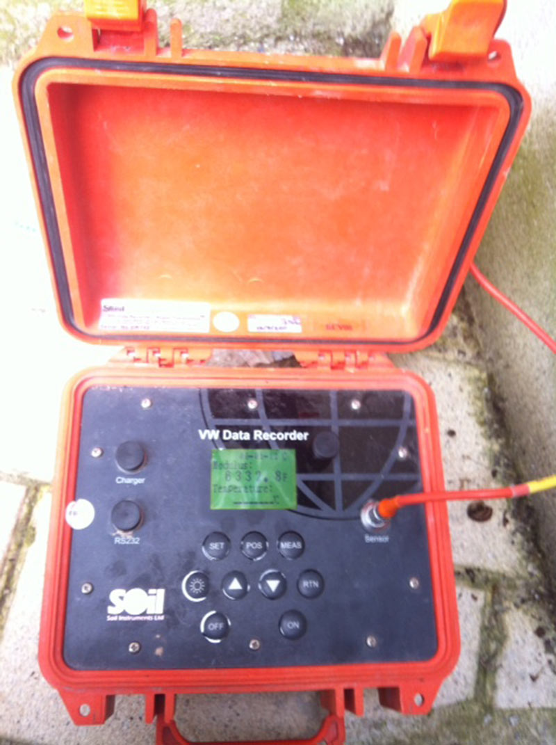 · Cerrado. Sensor que detecta la presión intersticial en un punto mediante un transductor que da una señal proporcional a los cambios de presión.