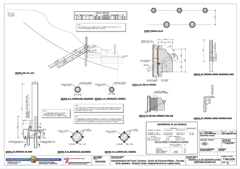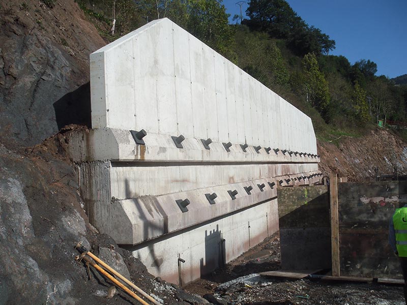 - Muros y otro tipo de contenciones (escolleras,mallas, gunitas, anclajes, etc.)