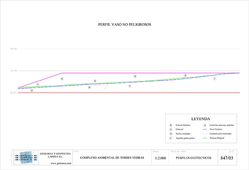 1-4-proyecto-relleno-en-azaila-teruelEstas condiciones establecen los requisitos básicos que, desde el punto de vista geológico – geotécnico, se deben tener en cuenta en la ejecución de vertederos. Estos requisitos se sintetizan en la selección de emplazamientos con permeabilidades reducidas, en la ejecución de una serie de barreras de impermeabilización y de drenaje, que minimicen el riesgo medioambiental que una instalación de estas características puede llegar a producir y en la adopción de un diseño que asegure la estabilidad y la integridad de la masa de residuos a lo largo del tiempo.